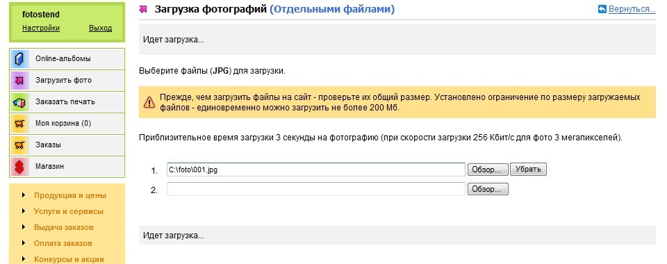(время загрузки зависит от объёма ваших файлов и скорости интернета).