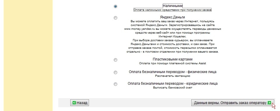 После нажатия 'Данные верны. Отправить заказ оператору' заказ уйдёт в работу!
